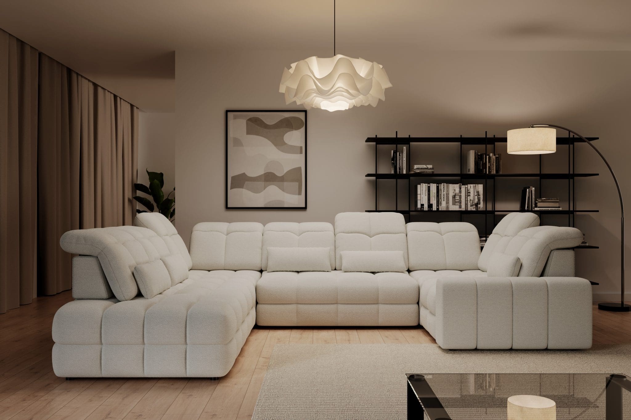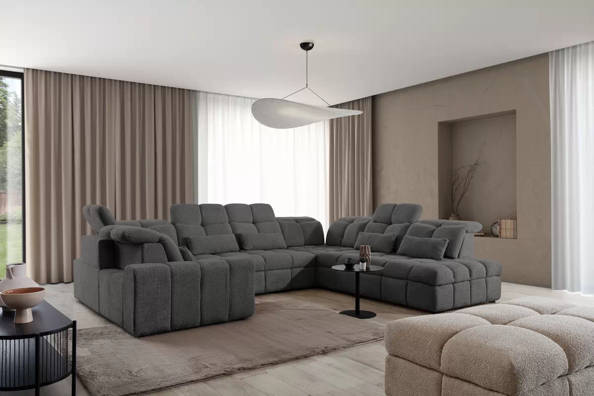 Hjørnesofa Magnelio U med elektrisk uttrekkbart sete og sovefunksjon