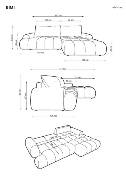 Hjørnesofa RIMI 280 med sovefunksjon