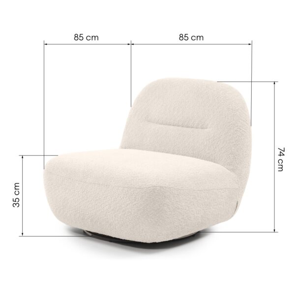 Boni har et skulpturelt og organisk uttrykk som taler til sansene. Den mykt buede ryggen og det romslige setet inviterer til avslapning, mens det strukturerte tekstilet gir karakter og dybde.