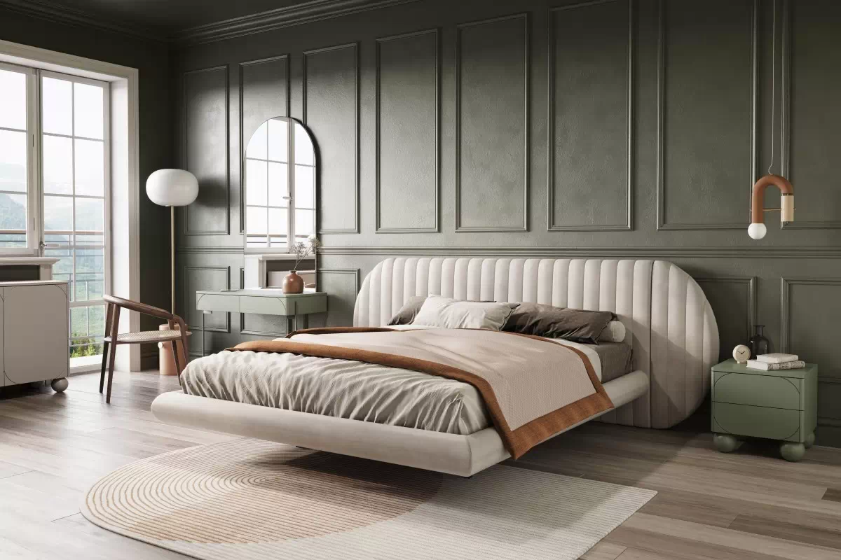 Galin er en moderne og elegant polstret seng som gir soverommet et luksuriøst uttrykk. Den unike «leviterende» designen med høye ben gir et lett og eksklusivt preg, samtidig som den gjør det enklere å rengjøre under sengen.
