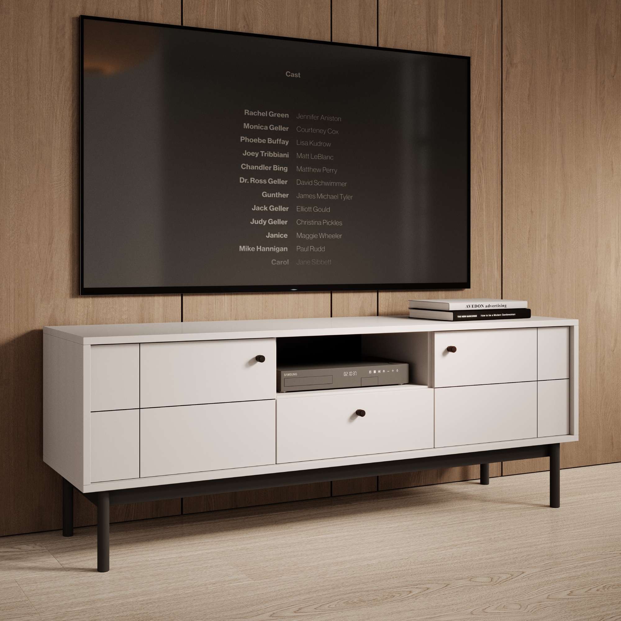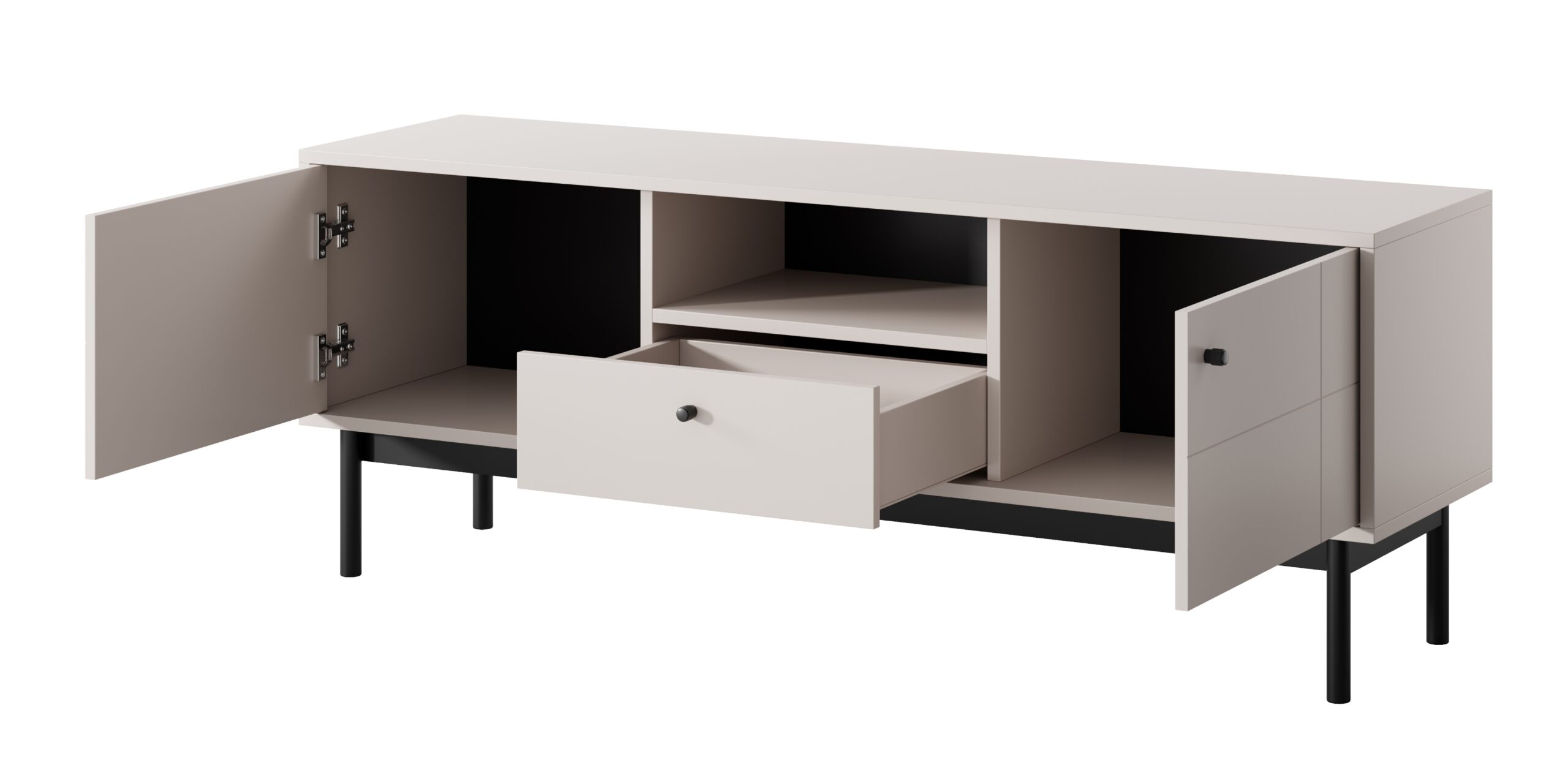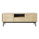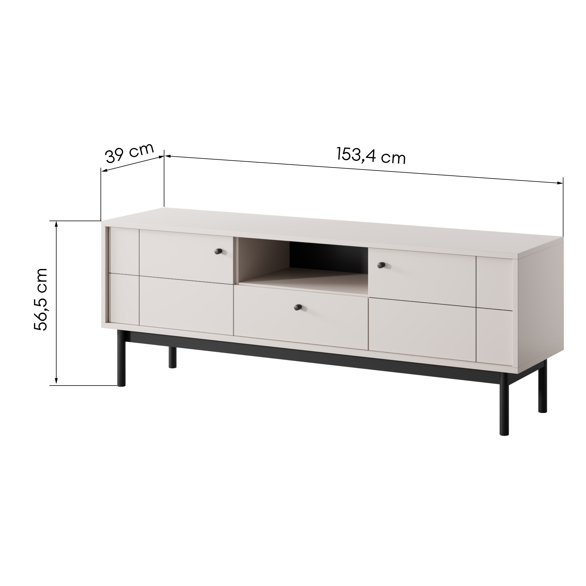 Japandi TV-benken kombinerer moderne design med brukervennlighet. Den elegante lys eik/kashmirfinishen gir den et stilfullt, men samtidig subtilt uttrykk som passer godt inn i ulike interiørstiler.