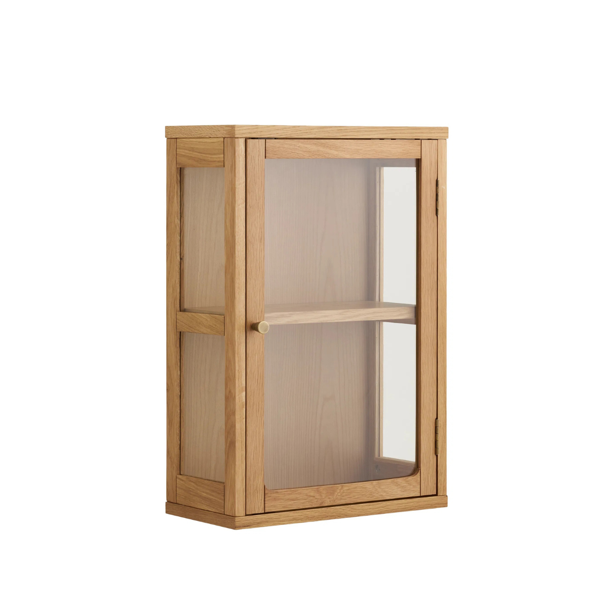 Zamora veggskap er et stilrent, vegghengt skap laget i eik og eikefiner kombinert med herdet glass.